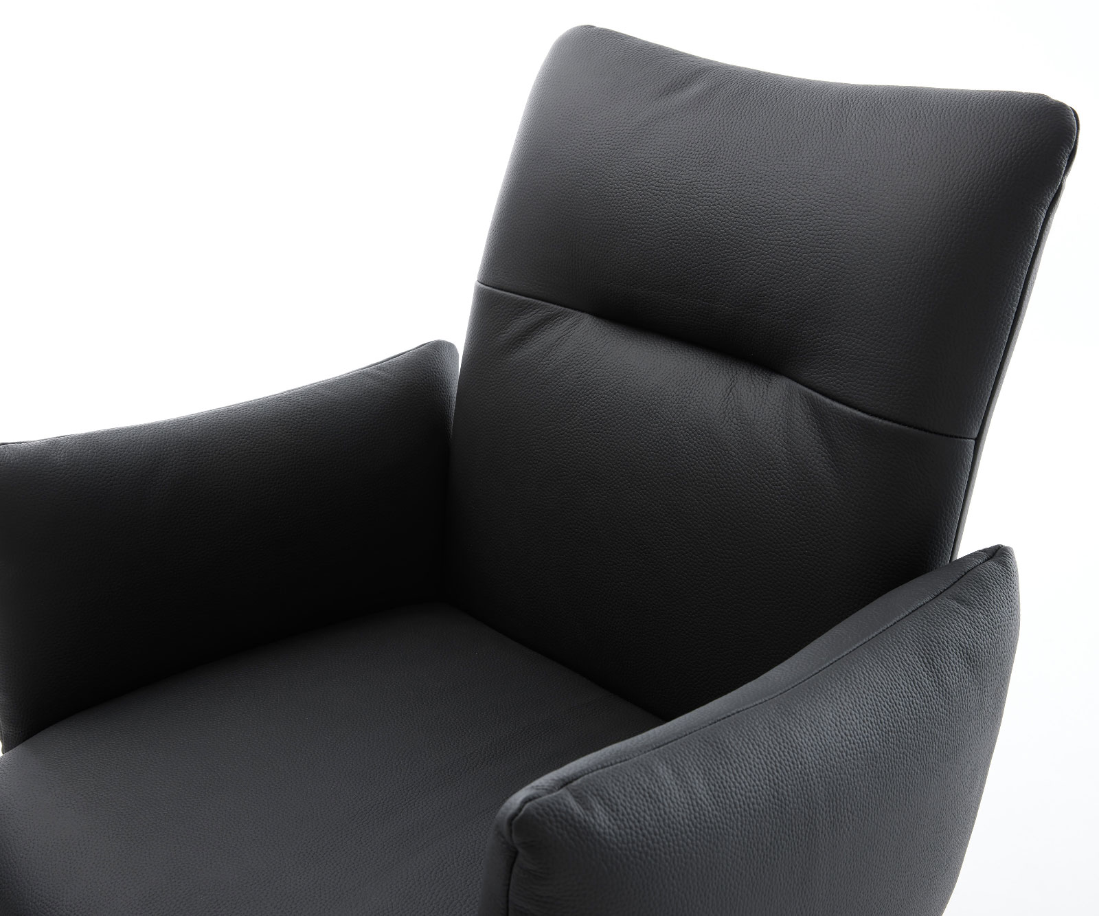 Použitá pravá kůže září v klasické černé barvě a díky své mimořádné hebkosti a výjimečné odolnosti svědčí o vysoké kvalitě.