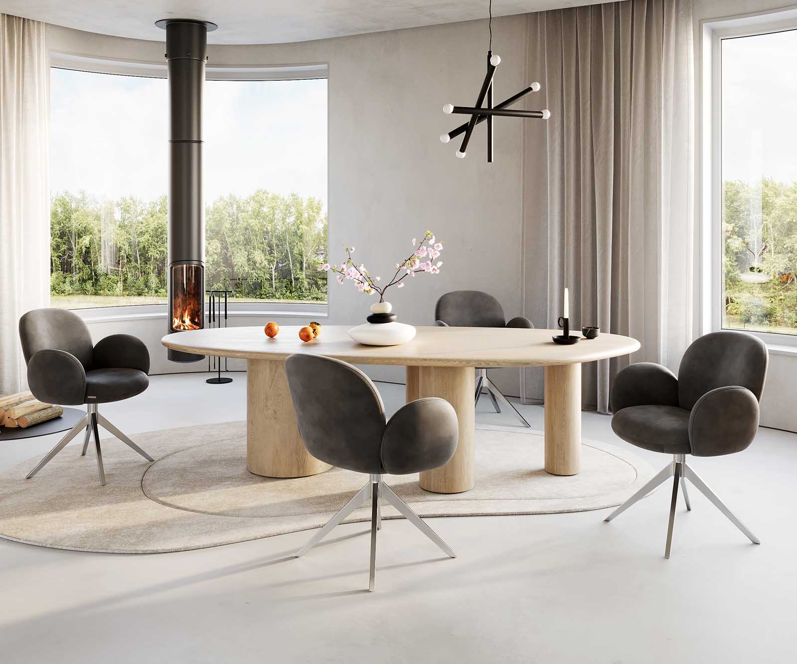 Moderně zaoblená jídelní židle Nube-Flex s područkami přináší do vašeho jídelního prostoru opravdový životní styl a díky extra silnému polstrování s kvalitním taštičkovým pružinovým jádrem nabízí jedinečný komfort sezení. Ergonomický design ve tvaru skořepiny šetří vaši páteř. Optické oddělení sedáku, opěradla a područek dodává židli Nube-Flex nezaměnitelný vzhled, který z ní činí skutečný designový klenot.