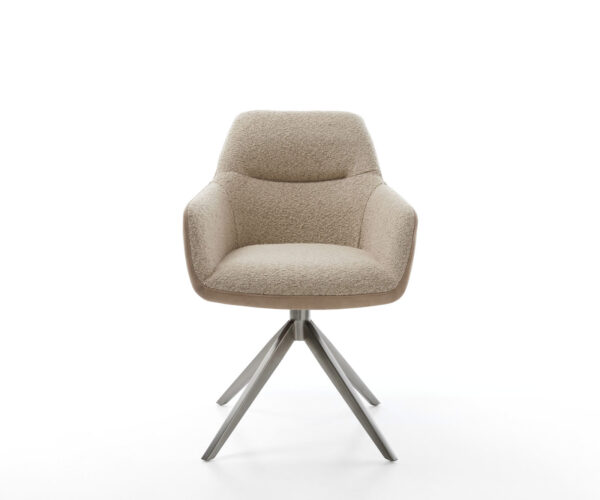 Zajímavá kombinace materiálů z mikrovlákna na vnější straně a bouclé činí jídelní židli skutečným must-have v každém vkusně zařízeném jídelním prostoru. Použití dvou materiálů je vizuálně velmi atraktivní, ať už jako samostatný kus nebo jako součást sedací sestavy.