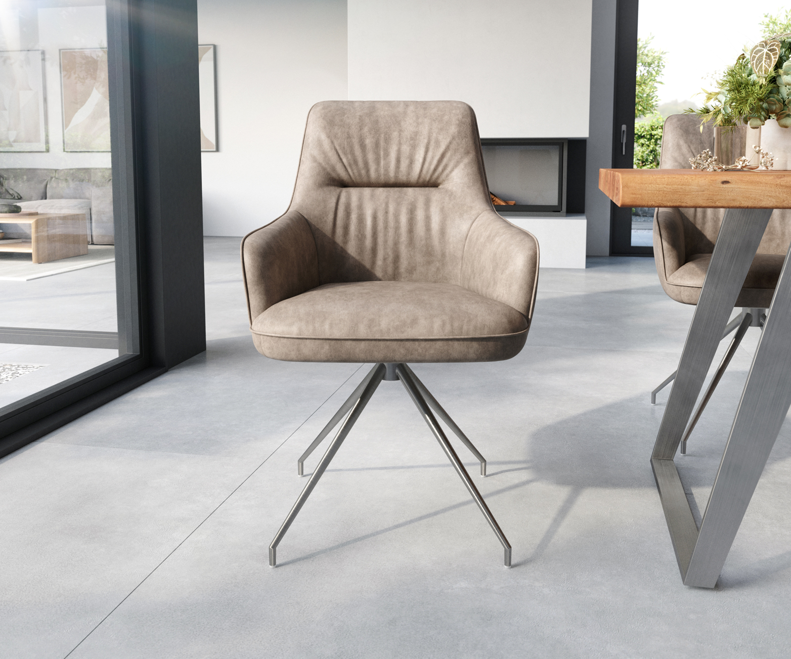 Jídelní židle Zelia s područkami mikrovlákno taupe vintage – systém židlí od DELIFE