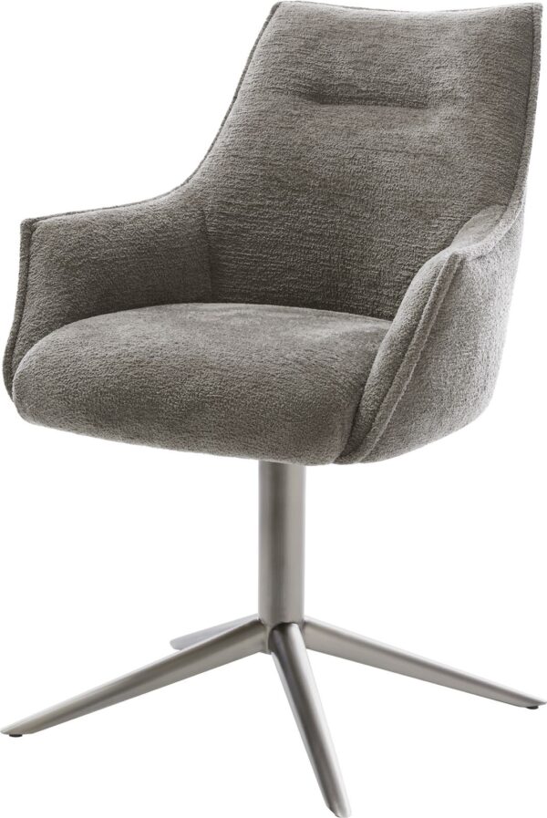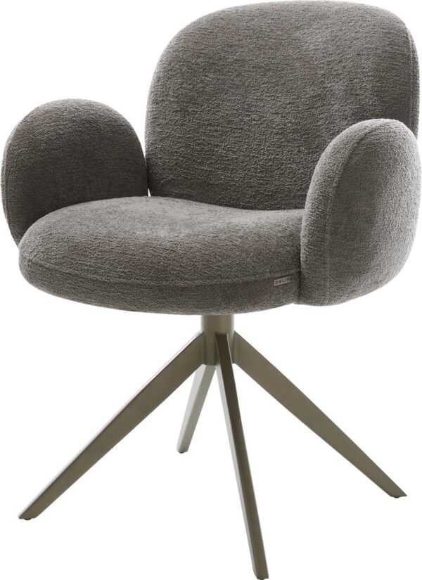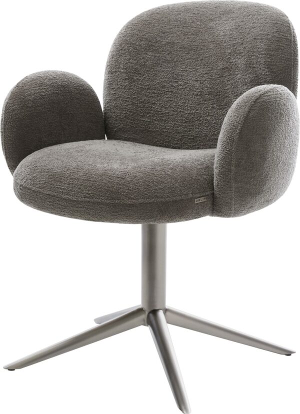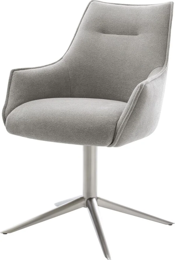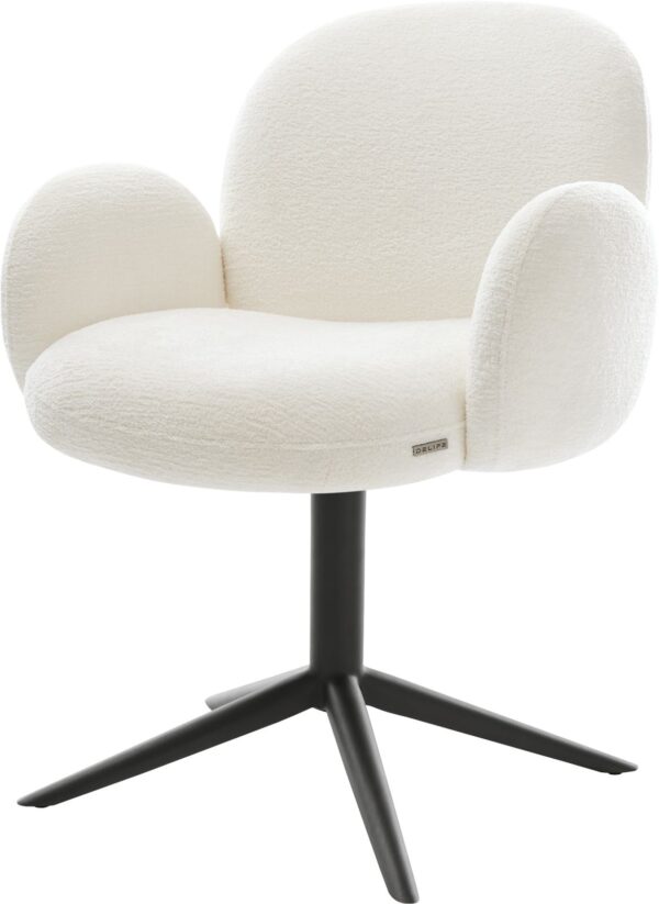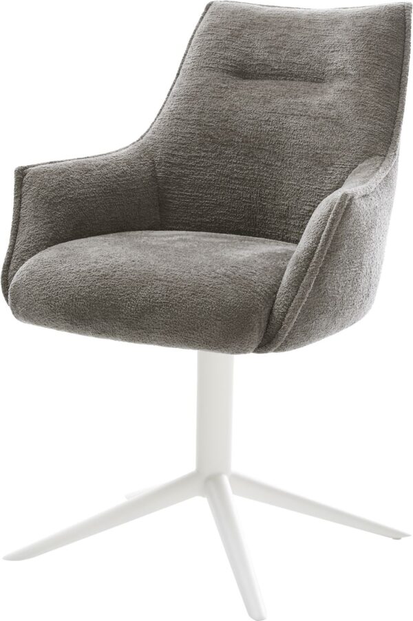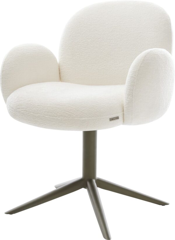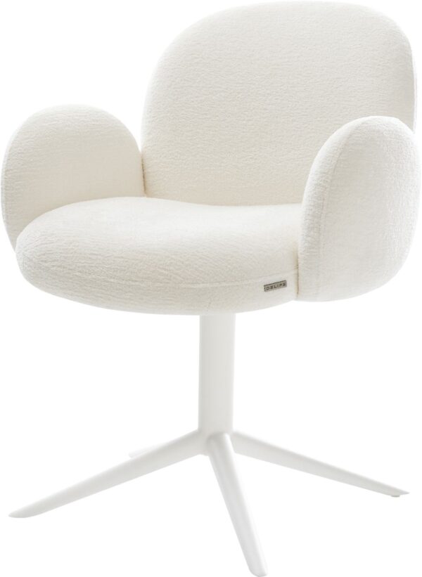 Jídelní židle Nube-Flex s područkami bouclé měkký béžová podnož křížová bílá 360° otočný houpací funkce taštičkové pružiny
