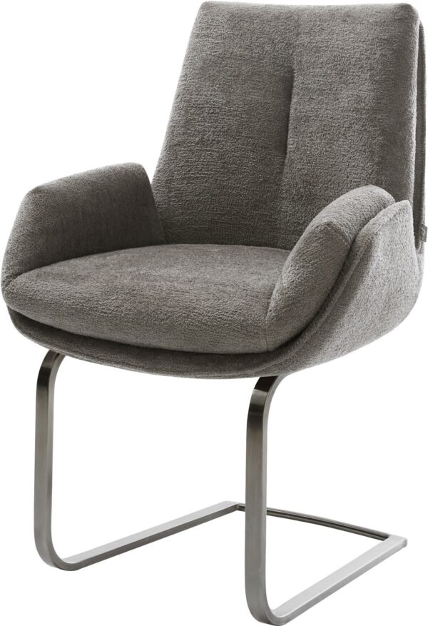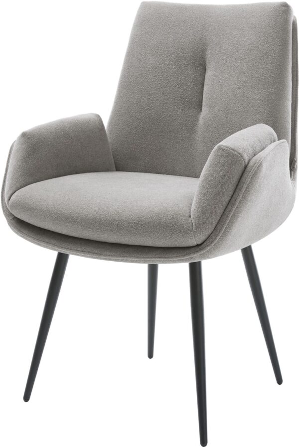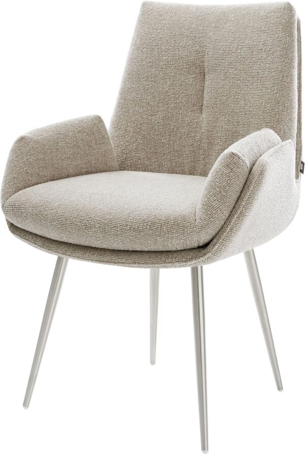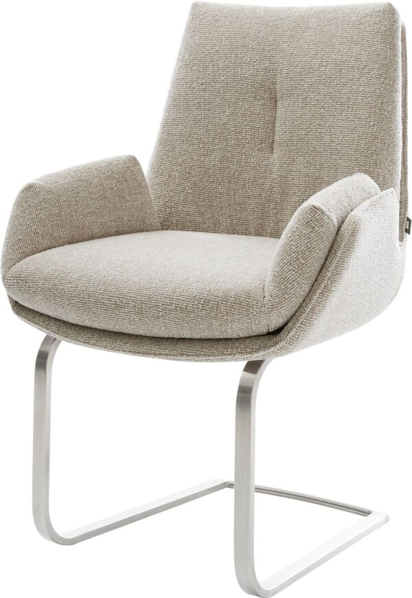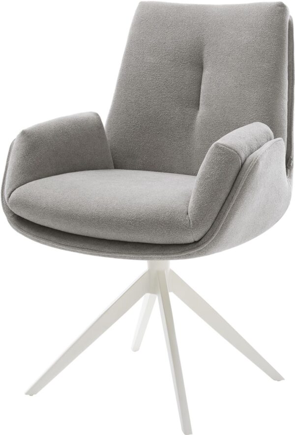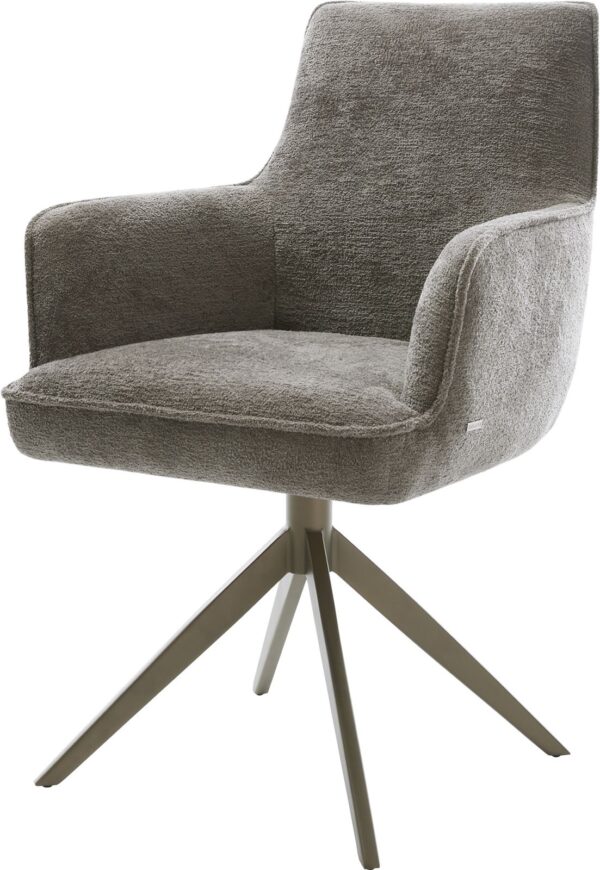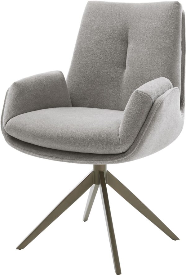 Jídelní židle Heira-Flex s područkami bouclé měkký tmavě béžová křížová podnož široká titanová barva 360° otočný houpací funkce taštičkové pružiny