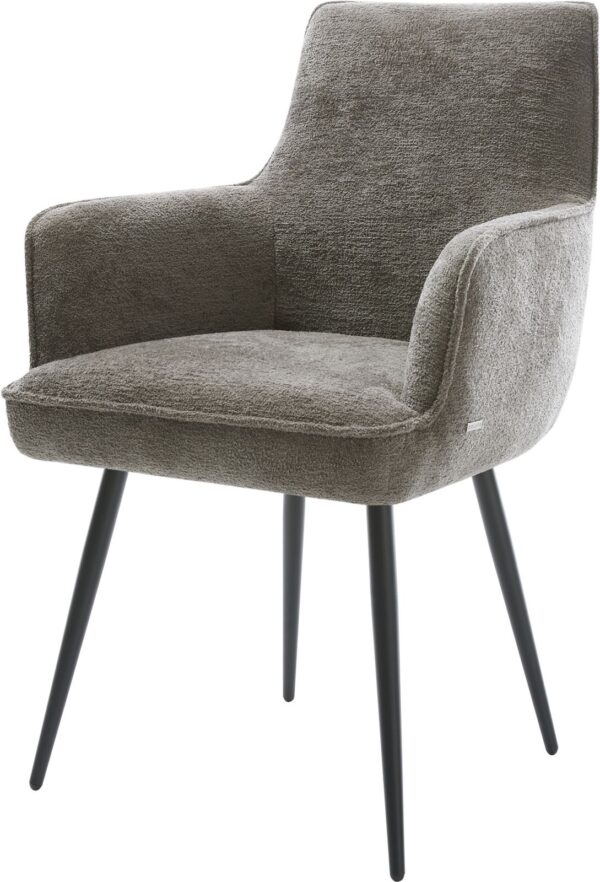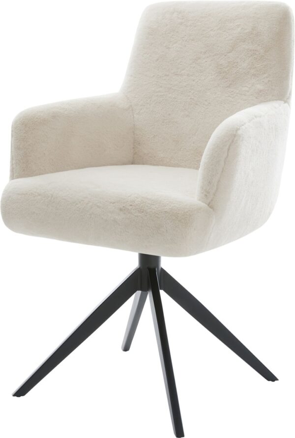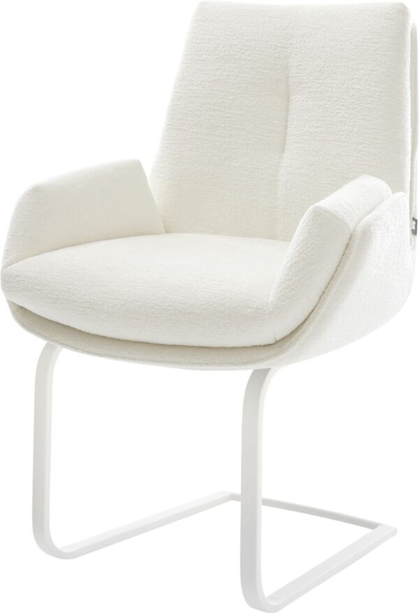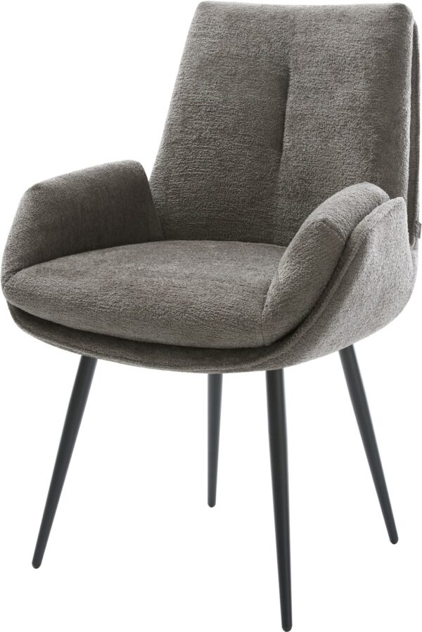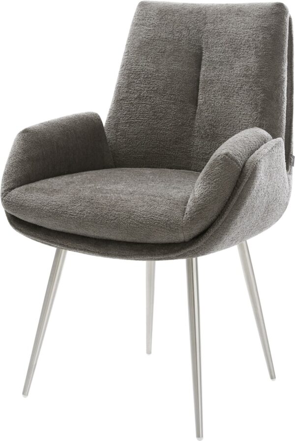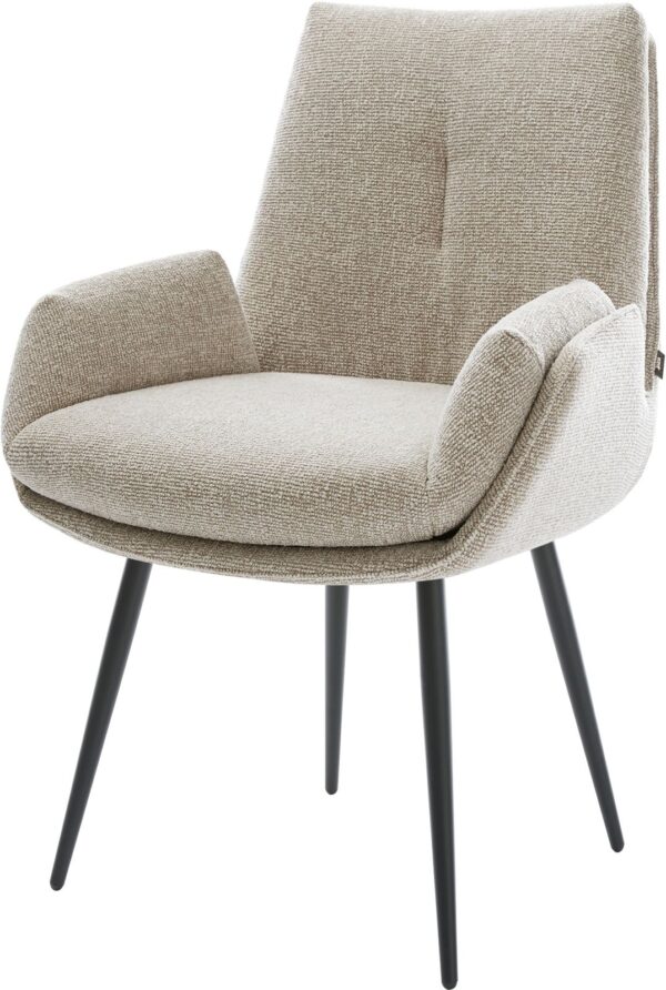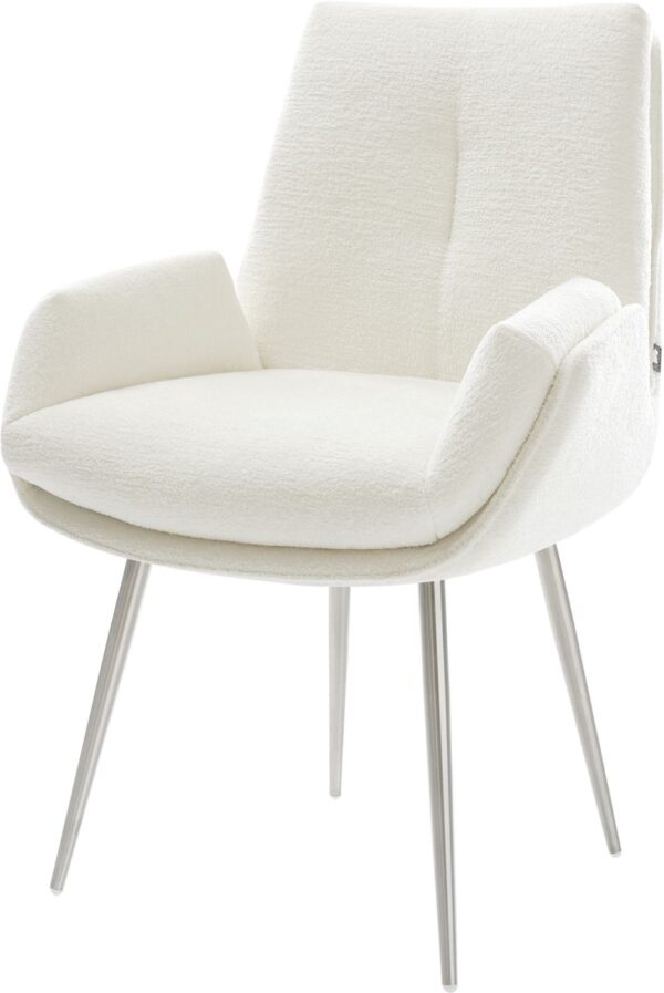 Jídelní židle Heira-Flex s područkami bouclé měkký tmavě béžová křížová podnož široká titanová barva 360° otočný houpací funkce taštičkové pružiny