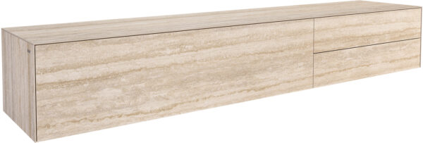 TV stolek Cuor 180 cm keramika Laminam® Sabbia dubová barva 1 výklopná dvířka 2 zásuvky podnož závěsná akrylglas