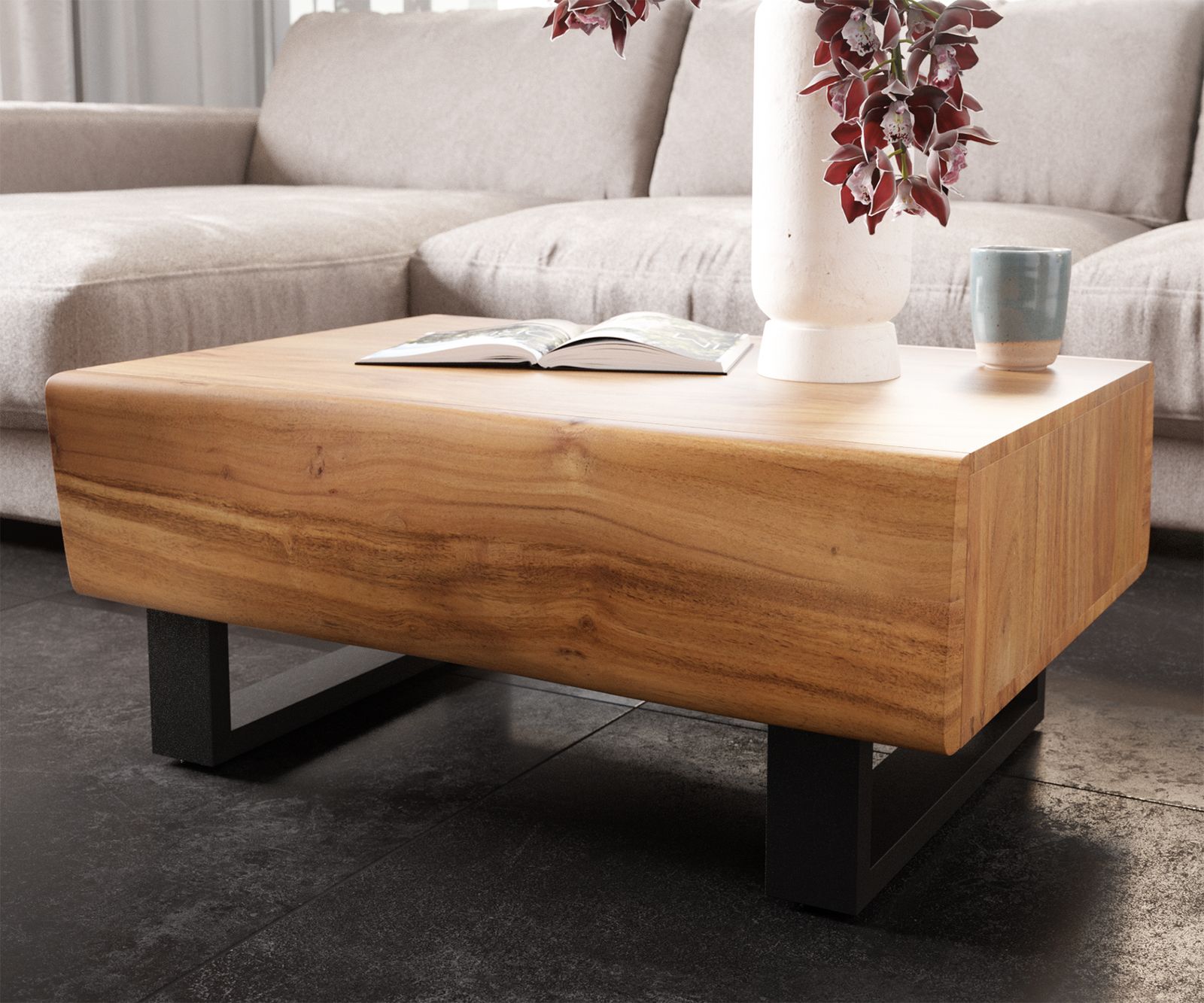 Krásné podnože ve tvaru lyžin z černého kovu dodávají každému konferenčnímu stolku DELIFE ještě více stylu a elegantní lehkosti.