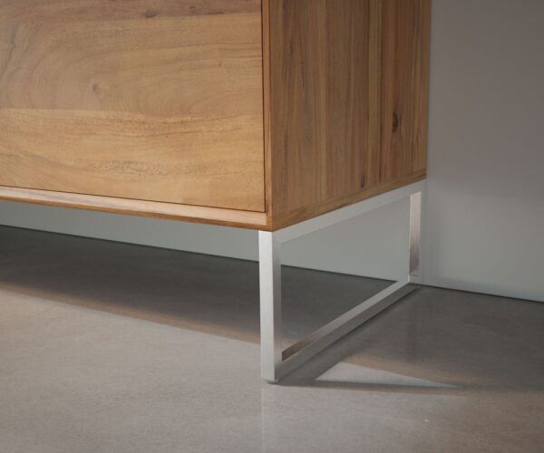 Jemná podnož z kvalitní nerezové oceli pro všechny DELIFE skříňové nábytky o šířce 40 cm přináší díky svému minimalistickému designu nadčasový styl do každé domácnosti a působivě doplňuje známé masivní dřevěné kreace DELIFE.
