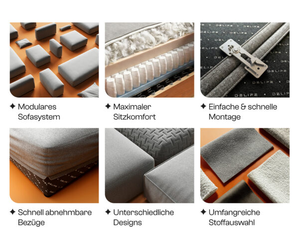 Poznámka: Každý modul je dodáván samostatně a lze jej během okamžiku potáhnout odpovídajícím potahem. Se spojkami z hardwarových sad a montáží nohou si můžeš sestavit svou individuální pohovku Freestyle – dokonale propojenou, velmi pohodlnou a přesně podle tvého stylu.