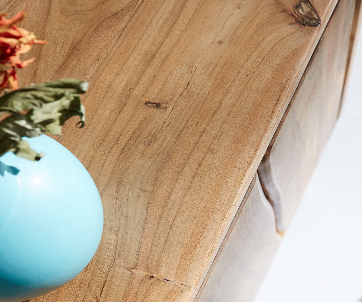 Hodně úložného prostoru nenápadně zabaleného – Komoda Live-Edge v přírodní barvě