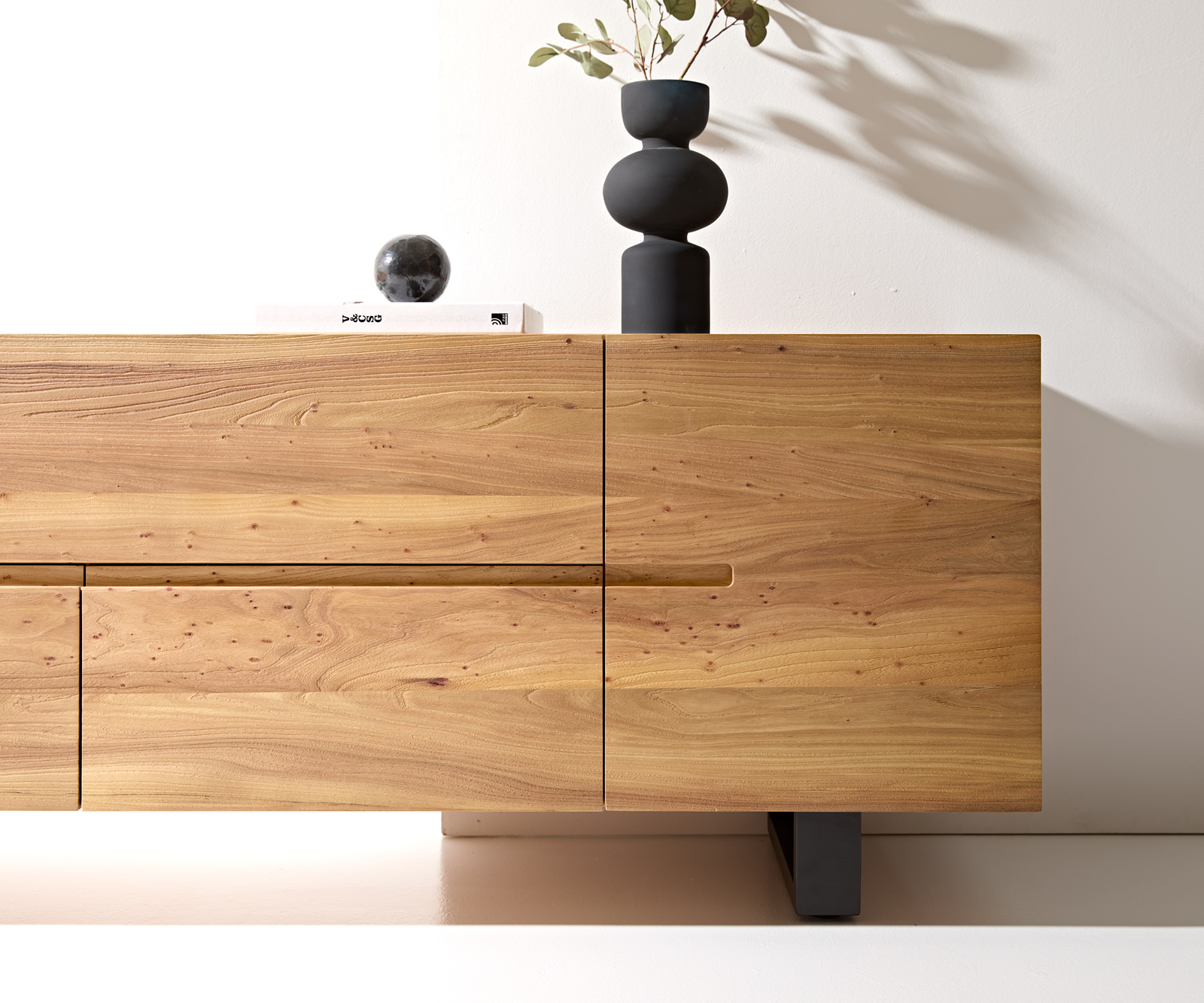 Kromě vysoce kvalitního vzhledu vyniká Tiamar praktickými vlastnostmi: zásuvky i dvířka mají funkci softclose, která zajišťuje tiché zavírání. Černě práškově lakované tenké kovové podnože dodávají nábytku jednoduchou eleganci a zároveň zajišťují stabilní stojan. Ať už v obývacím pokoji, jídelně nebo předsíni – Tiamar je ideální kombinací stylového designu a promyšlené funkčnosti.