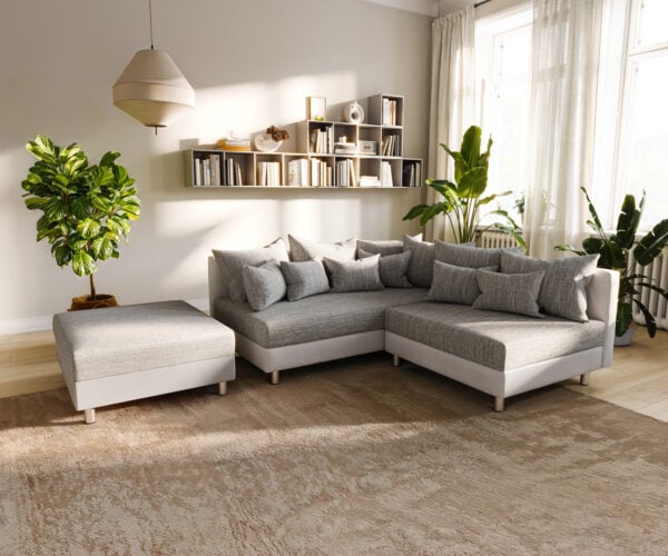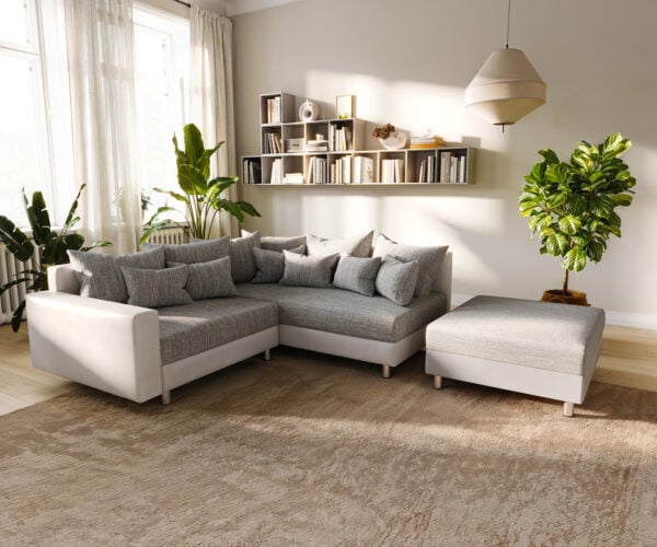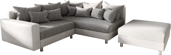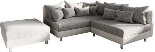 Díky své kompaktní podobě je rohová pohovka Clovis stejně perfektně vhodná pro velké i menší obývací pokoje. Sedačka složená z dvoumístného sedáku a otomany zaujme svým atraktivním a moderním vzhledem. Stojící na kulatých plastových nožkách, představuje tato rohová pohovka s pravým opěradlem mimořádně odolnou a snadno udržovatelnou potahovou látku z kvalitního mikroveluru. Velkoryse dimenzované sedáky s tvarově stabilní pěnovou výplní a pružinovým jádrem Bonell poskytují vynikající pohodlí při sezení i ležení.