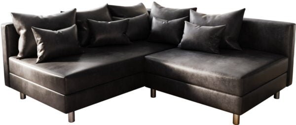 - Poznámka: včetně 6 velkých a 6 menších polštářů; otomana je z pohledu zepředu umístěna na pravé straně;