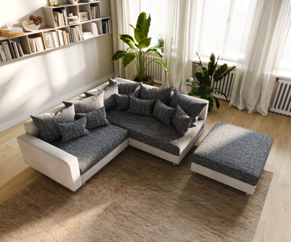 Díky své kompaktní podobě je rohová pohovka Clovis stejně dokonale vhodná pro velké i menší obývací pokoje. Pohovka složená z dvoumístného sedáku a otomany zaujme svým atraktivním a moderním vzhledem. Stojí na kulatých plastových nožkách a nabízí robustní a snadno udržovatelný potah z koženky. Velkoryse dimenzovaná sedadla s tvarově stabilní pěnovou výplní a bonellovým pružinovým jádrem poskytují vynikající pohodlí při sezení i ležení.