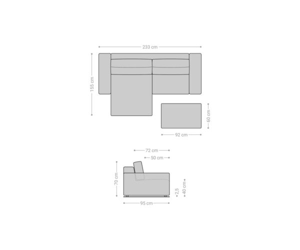 - Rozměry cca: Š233 × H155 × V70 cm
