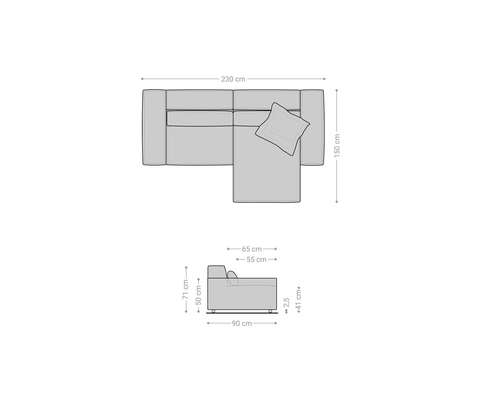 - Rozměry cca: Š230 × H150 × V71 cm