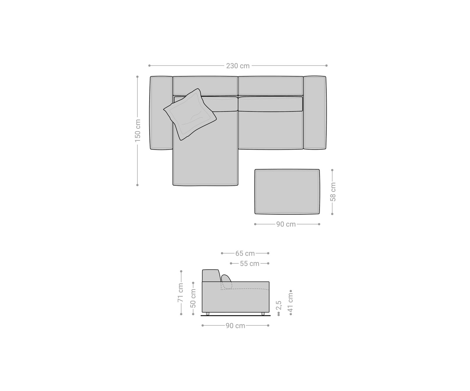 - Rozměry taburetu cca: Š90 × H58 × V41 cm