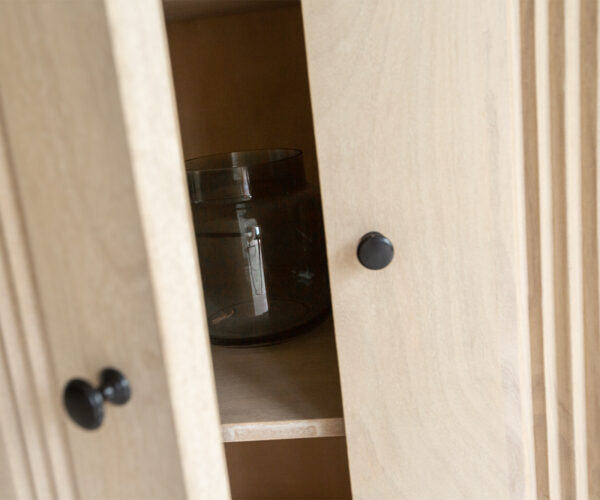 Dřevo manga ukazuje přirozenou kresbu, která je u highboardu obzvlášť dobře viditelná. Dvě dvířka skříně, jimiž je model vybaven, dávají vzhledu další prostor k rozvinutí. Zároveň skrývají předměty, které uložíte do polic highboardu.