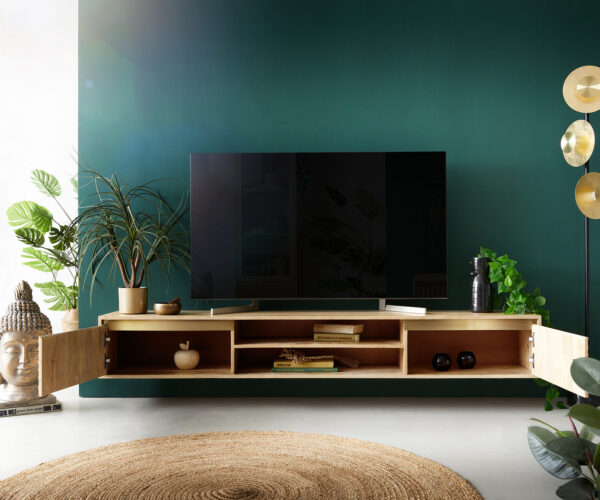 - Poznámka: jedná se o přírodní produkt, který může podléhat přirozeným odchylkám a optickým změnám; suků a jiných inkluzí či nepravidelností v materiálu je rovněž přirozená součást; k montáži TV stolku jsou přiloženy kovové úchyty; materiál pro nástěnné upevnění není součástí dodávky