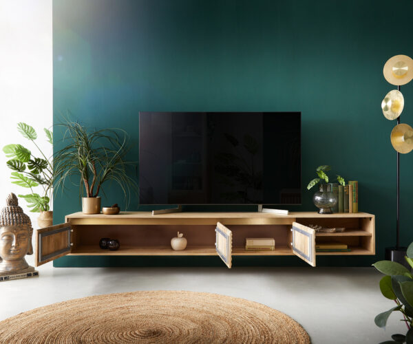 - Poznámka: jedná se o přírodní produkt, který může podléhat přirozeným odchylkám a vizuálním změnám; suků a dalších inkluzí či nepravidelností v materiálu je také přirozené; k montáži TV stolku jsou přiloženy kovové spojovací prvky; montážní materiál na stěnu není součástí dodávky