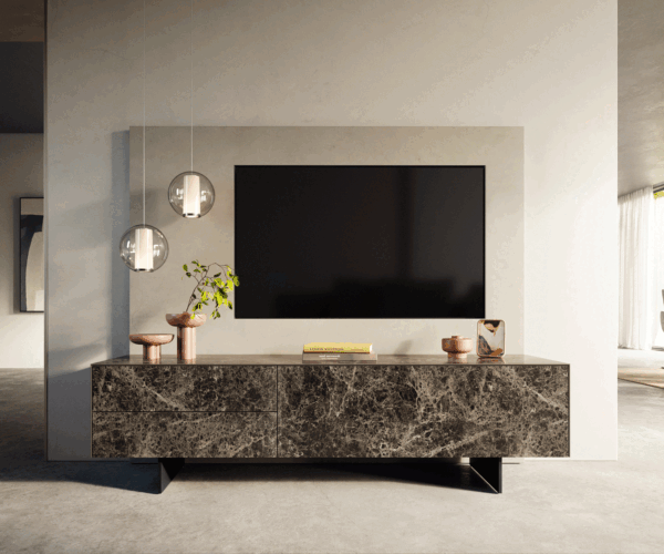 Design potkává eleganci – TV stolek CUOR z keramické Laminam® v barvě Emperador tmavě hnědá