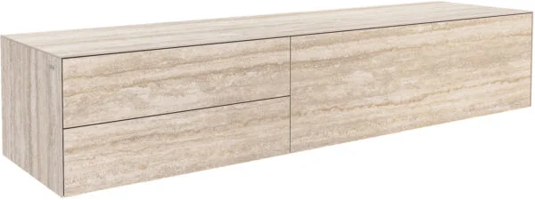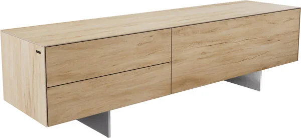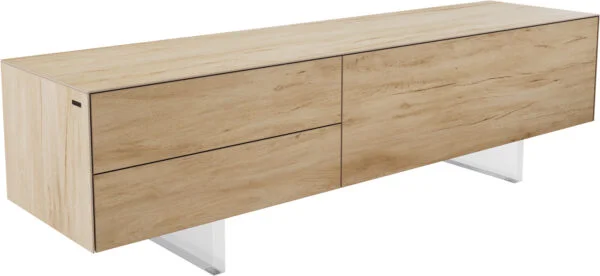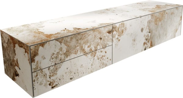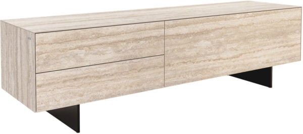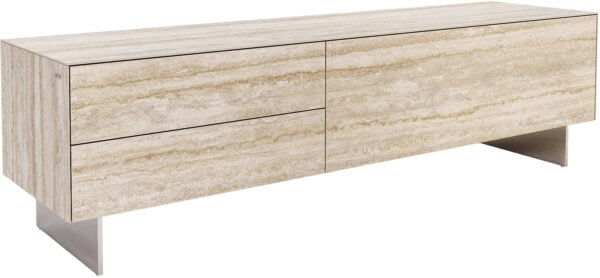 Vysoce kvalitní keramická deska Laminam® z Itálie, známá svou vynikající estetikou a odolností, dodává TV stolku CUOR jedinečné barevné provedení v elegantních, dřevěným tónům podobných odstínech – inspirovaných teplými pískovými barvami kolem benátské laguny, které připomínají vzácné dubové dřevo. Jemně plynoucí kresba dřeva a bohatá barevná hra vytvářejí příjemnou atmosféru a harmonicky doplňují ikonický design CUOR. Jemné nohy z černého práškově lakovaného kovu upoutávají pozornost na design nábytku, zajišťují mu pevnou oporu a dodávají mu lehký, zdánlivě bezváhový vzhled.