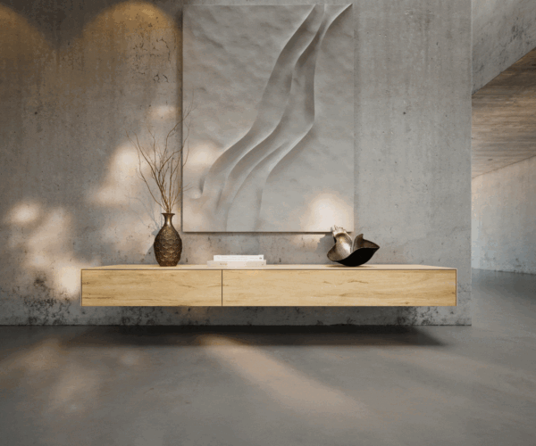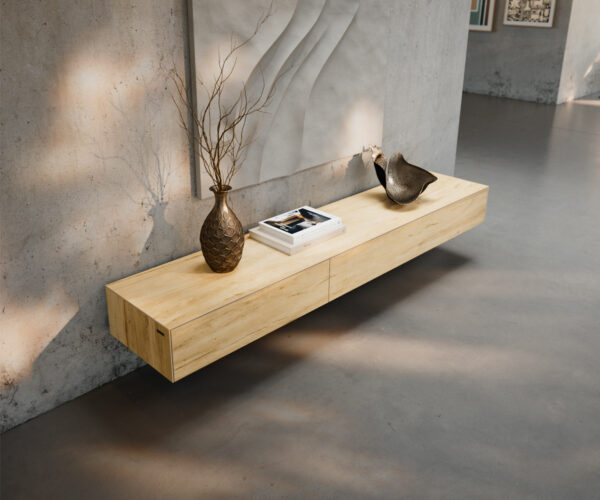 Ušlechtilá keramika Laminam® z Itálie – synonymum nadčasové elegance a mimořádné odolnosti – u tohoto TV stolku ze série CUOR plně rozvíjí svůj výraz. Teplé barevné odstíny připomínající dřevěné tóny, inspirované jemnou pískovou paletou benátské laguny a charakterem ušlechtilého dubu, splývají s plynulou kresbou dřeva do harmonického celku. Tato mistrovská hra barev a struktury dodává CUOR nezaměnitelnou hloubku, která činí tento ikonický design nezapomenutelným. Pro ještě působivější efekt je nábytek upevněn pevnou držákem přímo na stěnu. Závěsný vzhled přináší lehkost a zvlášť harmonický vzhled.