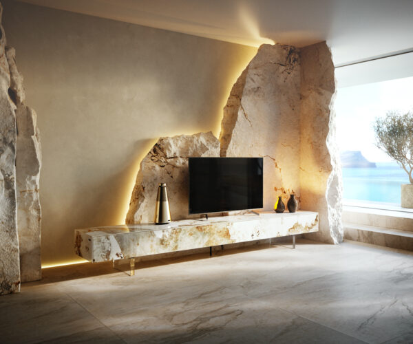 Styl.Design.Ikona. – TV stolek CUOR z keramiky v barvě Minas Melange