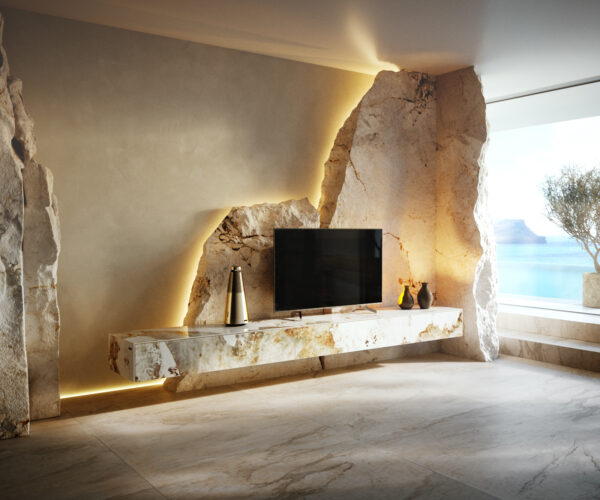 Styl.Design.Ikona. – TV stolek CUOR z keramiky v barvě Minas Melange