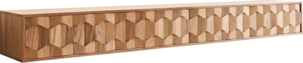 Přírodní akáciové dřevo září v teplém odstínu a zaujme jedinečnou kresbou dřeva. Nízký TV stolek o délce 220 cm nabízí kromě místa pro TV také praktický úložný prostor uvnitř za 4 dvířky.