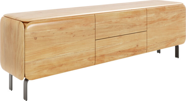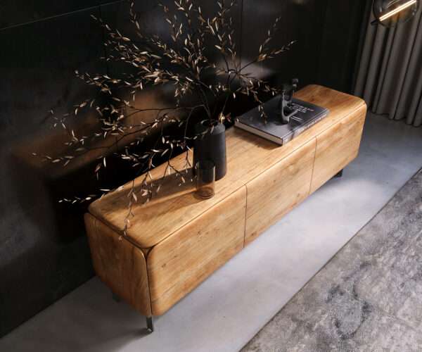 Řada Shavani z kolekce Akácie kombinuje přírodní materiály s jasným, moderním tvarem. Stříbrné nerezové nohy lehce zvedají TV stolek od podlahy a prostor tak působí větší a vzdušnější. Tento designový klenot spojuje ušlechtilé řemeslné zpracování s funkční strukturou a dokonale zapadne do každého stylového obytného prostředí.