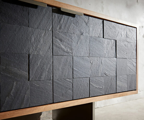 - Poznámka: jedná se o přírodní produkt, který může podléhat přirozeným odchylkám a optickým změnám; suků a dalších inkluzí či nepravidelností v materiálu je rovněž přirozené; na zadní straně je průchod pro kabely; výroba elegantních kamenných dýhových čel v jedinečném 3D mozaikovém designu je velmi náročná a může být provedena pouze ručně. Vyžaduje to hodně trpělivosti, ještě více zkušeností a vůli vytvořit z každého mozaikového čela nezaměnitelné umělecké dílo.