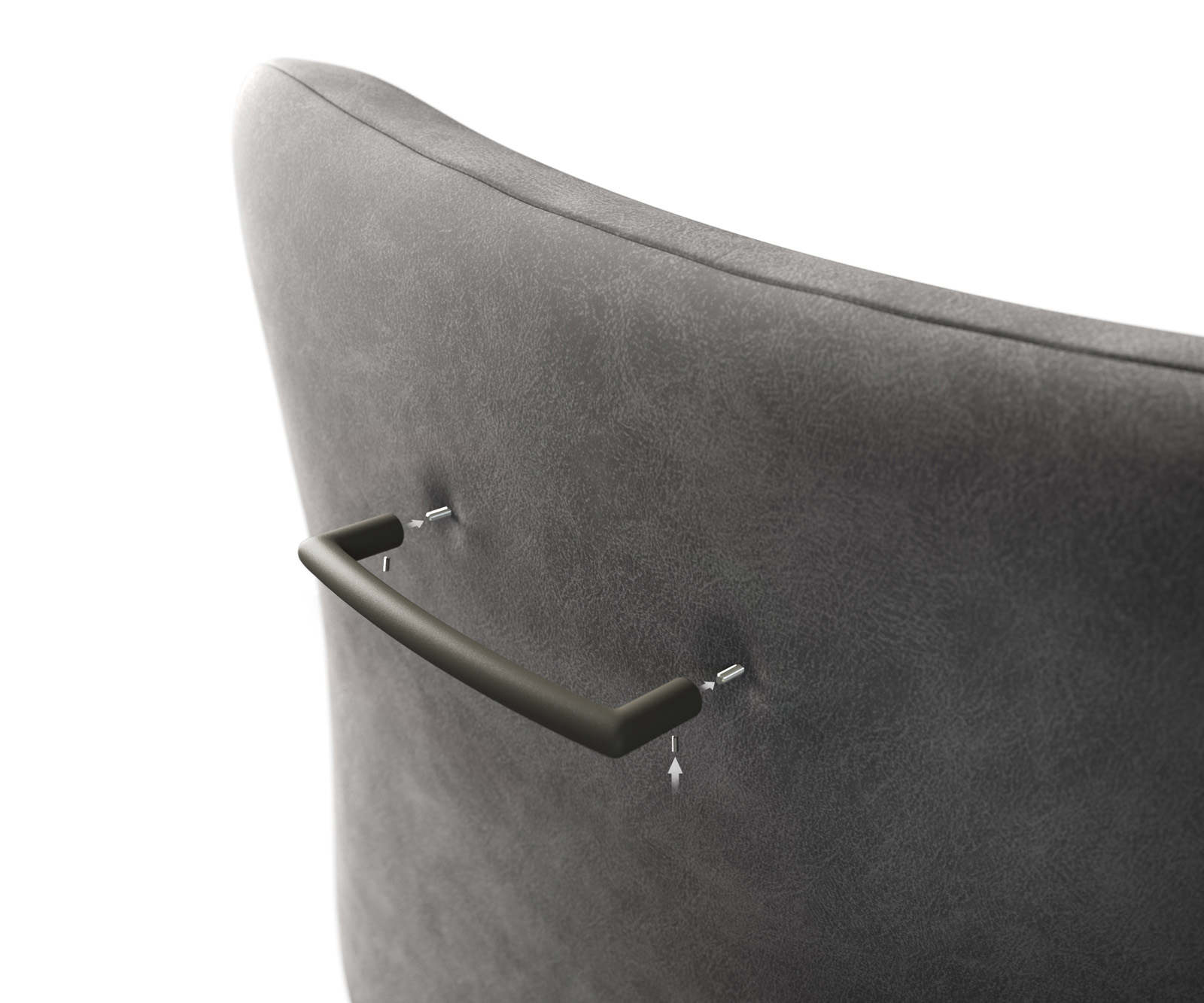 Tato rukojeť z kovu s efektovým povrchem je kompatibilní s každou jídelní židlí z naší řady FLEX. Při první montáži ji připevněte na zadní straně sedáku na dvou místech označených písmenem „A“.