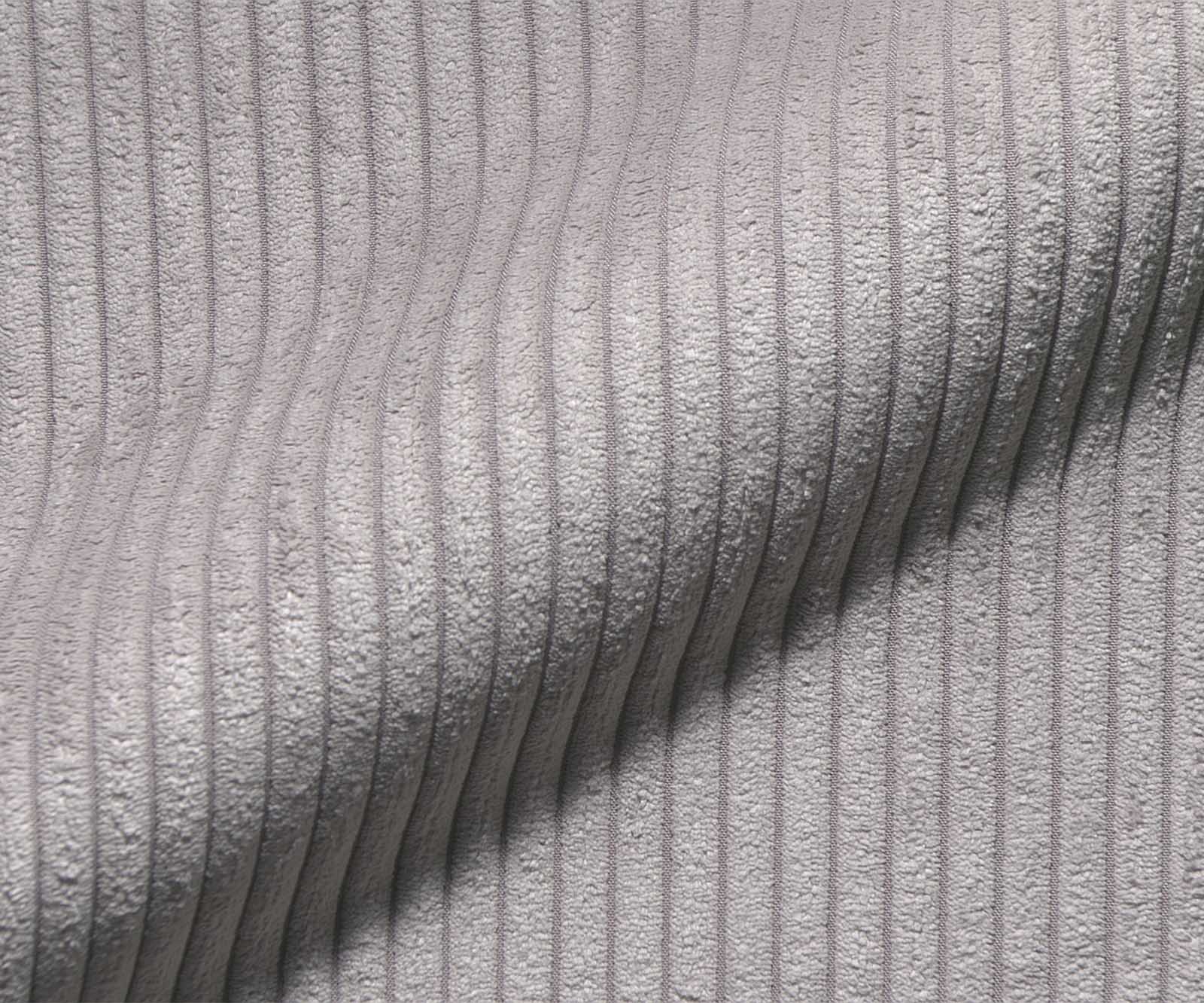 Manšestrová látka (100 % polyester) v elegantní stříbrně šedé barvě je velmi moderní a vyznačuje se příjemnou strukturou a snadnou údržbou, protože manšestr je příjemný na dotek, zároveň však velmi odolný a nenáročný na údržbu.