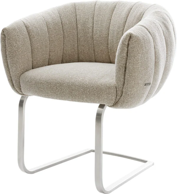 Jídelní židle Jada-Flex tkanina měkká béžová tenká podnož nerezová ocel taštičkové pružiny