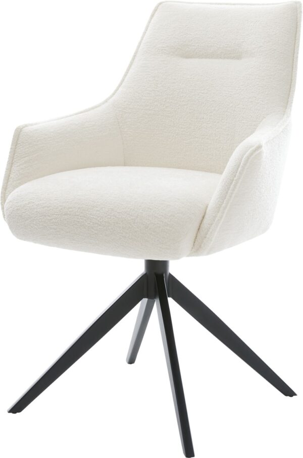 Jídelní židle Heira-Flex s područkami bouclé měkký tmavě béžová křížová podnož černá 360° otočný houpací funkce taštičkové pružiny
