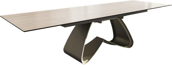 Jídelní stůl Edge oválný 220x120 keramika Laminam®Travertino Bianco krémově bílá Zenthara hranatý kov černý